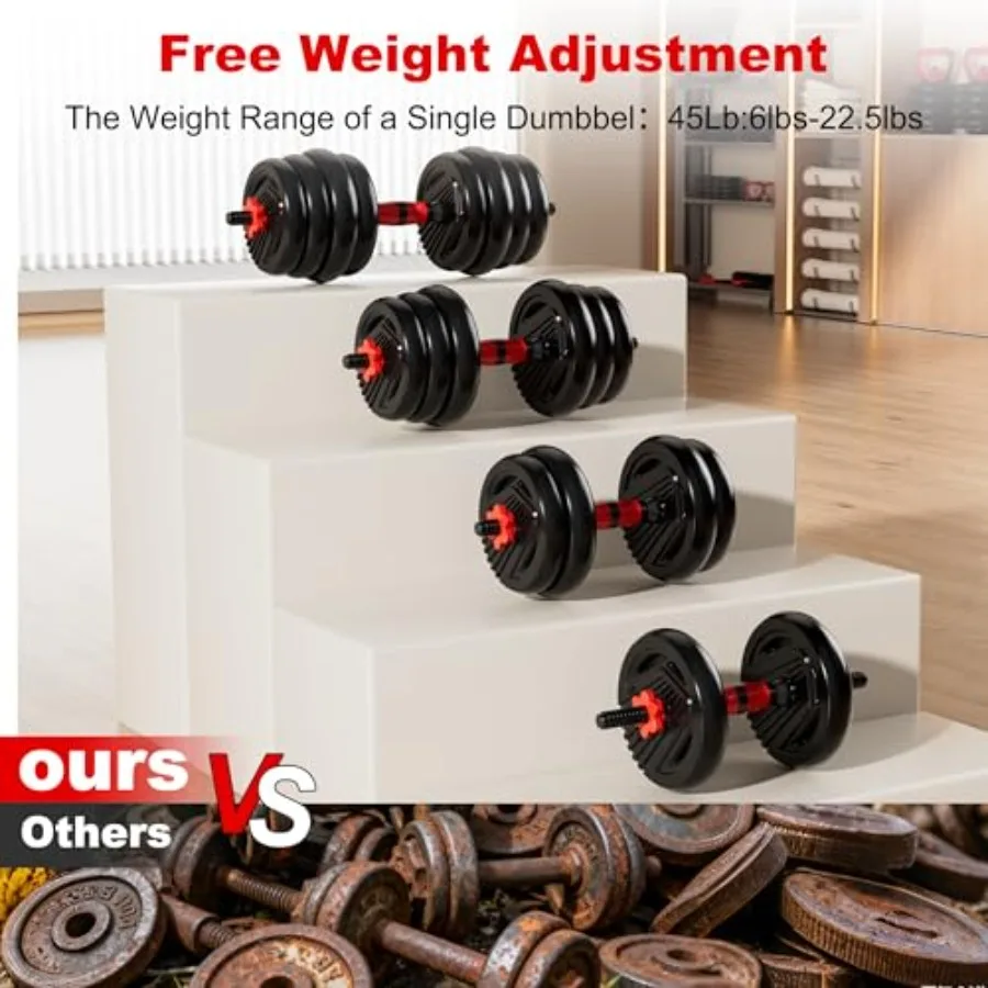 Adjustable Dumbbell/Barbell/Kettleball Set 10/20/30/45/70/90lbs Free Weight Set