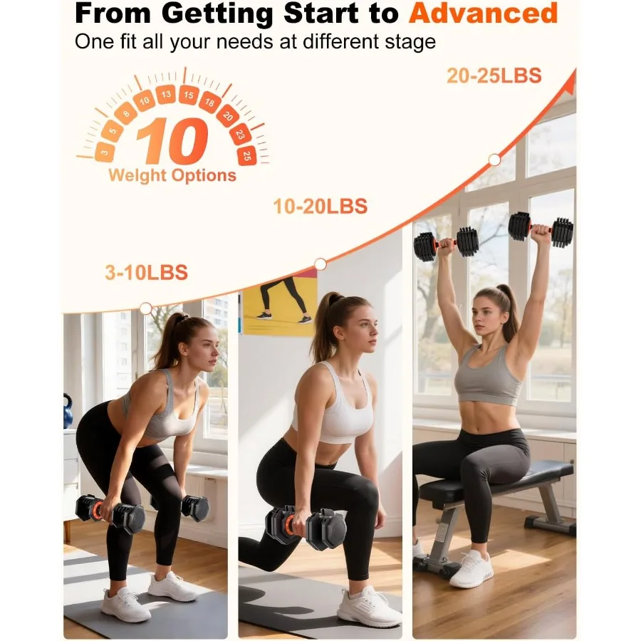 Upgrade your home workouts with the Latest Adjustable Dumbbell Set of 2, designed for fast weight changes, space-saving convenience, and progressive strength training. With quick-switch technology and precise 3 lb increments, this set makes it easy to customize your workouts and stay focused on performance. Training Site: ARMS, Legs, Waist & Abdomen Exercise