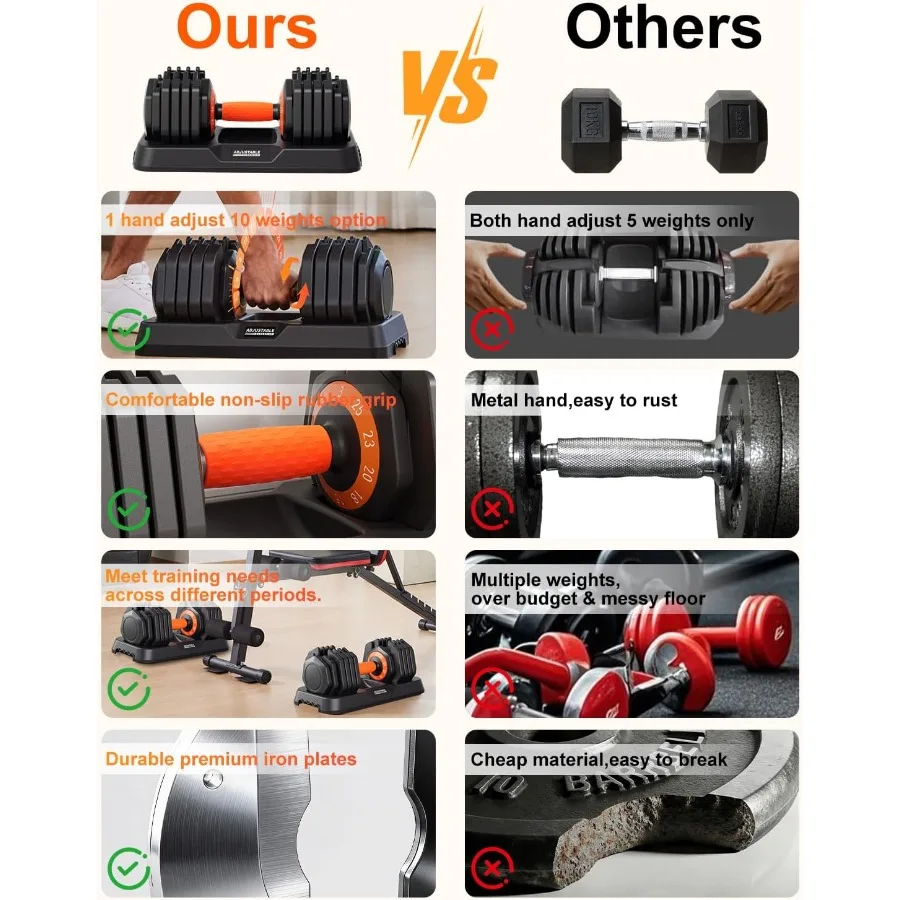 Convenience: One set replaces multiple dumbbells, reducing clutter